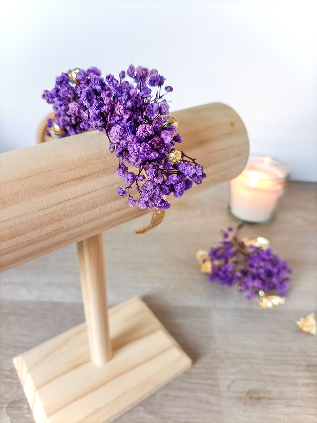 • Composition: Gypsophile stabilisé et lin doré. Bracelet en acier inoxydable doré légèrement ajustable. Il épouse le poignet tout en restant résistant à l’usure.