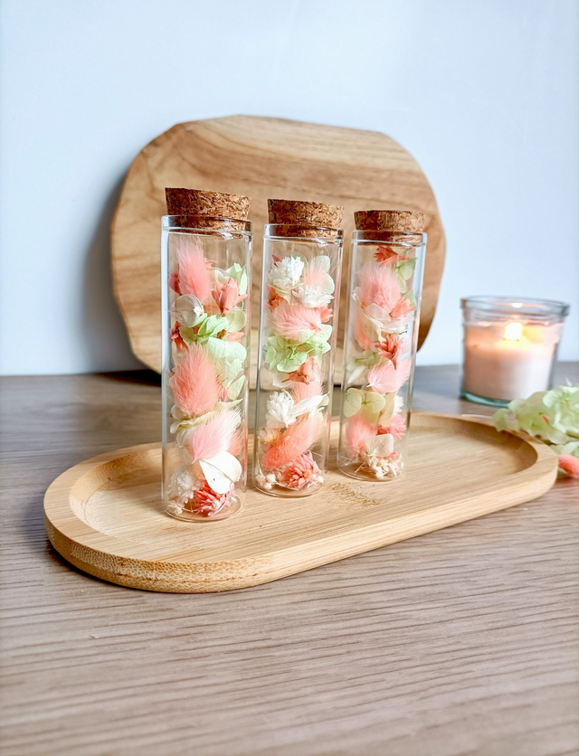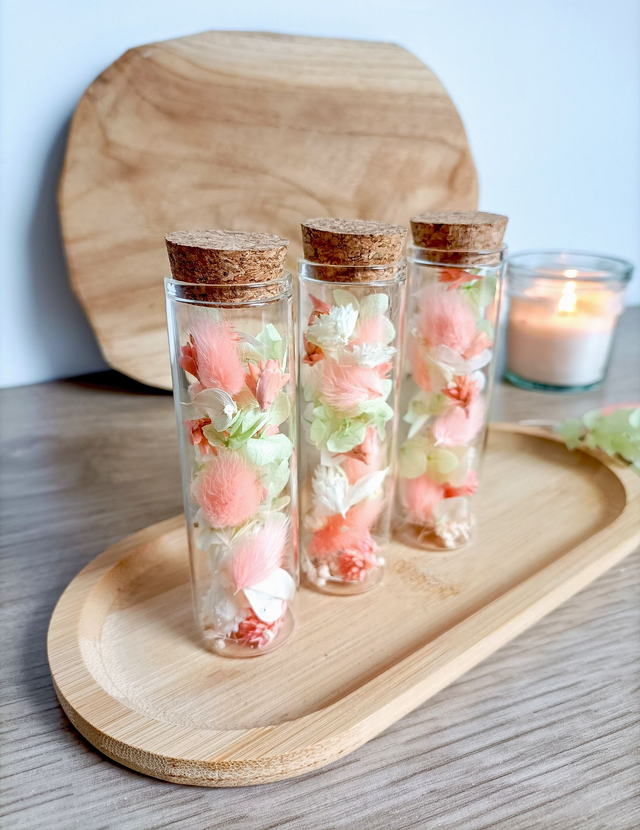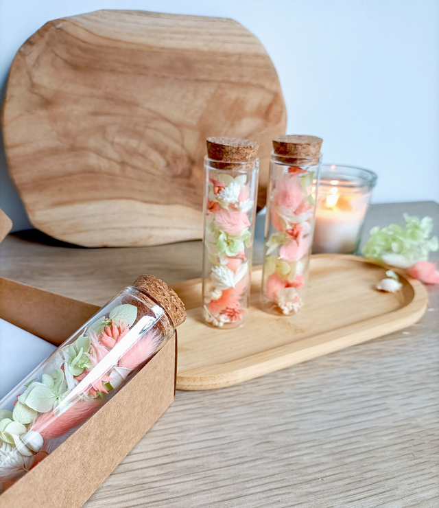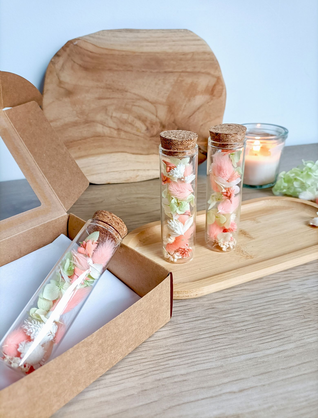 Une idée cadeau à offrir lors d'une belle occasion, pour dire merci ou simplement pour se faire plaisir. Ces fioles se posent sur une étagère, un bureau ou une table de chevet, apportant une touche fleurie à tout intérieur.