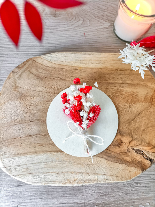 La chaleur du bois, associée à la délicatesse des fleurs, crée un petit objet charmant pour égayer votre bureau ou votre intérieur.